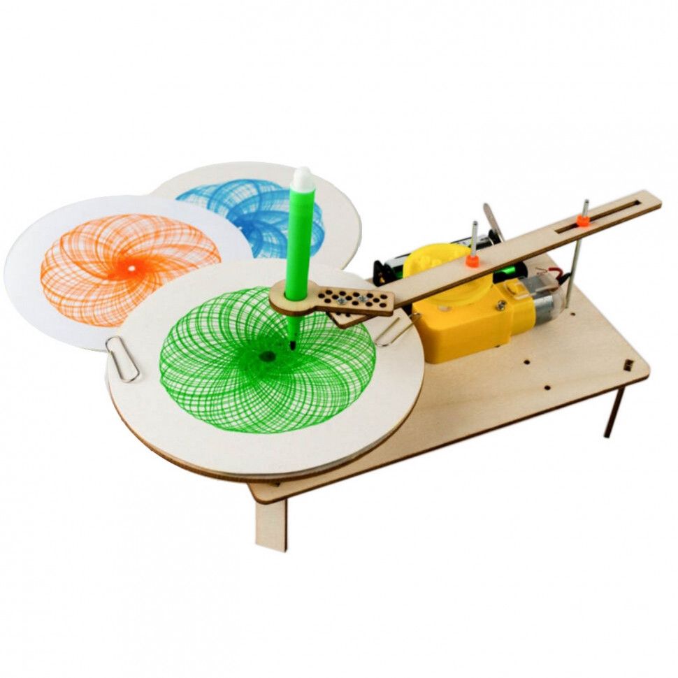 Спірограф - це Суперцікава іграшка, яка створить хороші зображення фломастером на папері або картоні. Після того, як здаси іграшку, зможеш побачити вчинені зображення, які він робить. І лови лайфхак: якщо іграшку зупинити і в утримувач поставити фломастер іншого кольору, отримане зображення буде різнобарвним! Конструюй і стартуй!