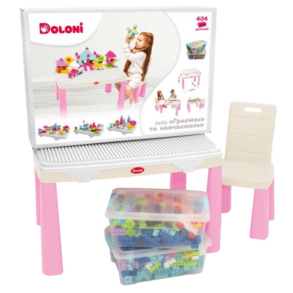 Дитячий стіл та стілець з накладкою для гри + 2 набори конструкторів. Doloni 04660/11