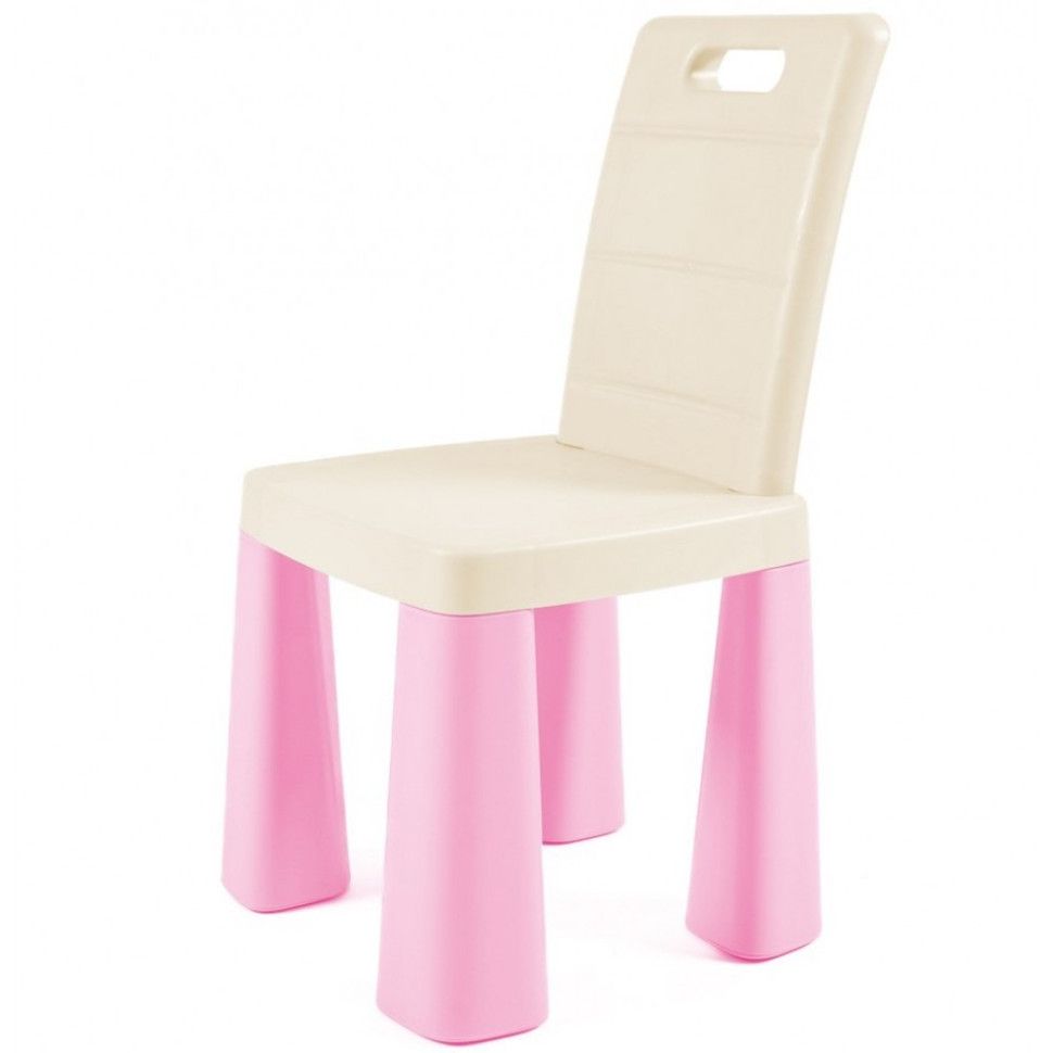 Комплект 04660/11 рожевого кольору складається з дитячого пластикового столу та одного дитячого стільця. Стілець можна використовувати як табурет, адже в цій моделі повністю знімається спинка. Замість спинки можна встановити заглушку, яка входить у комплект.