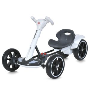 Дитячий електрокарт має міцну та стійку конструкцію, розраховану на активні поїздки. М'які колеса EVA забезпечують плавний хід і хороше зчеплення з дорогою, а складна конструкція робить зберігання та транспортування максимально зручним. Світлові ефекти, музика та Bluetooth додають атмосферу справжнього драйву, дитина відчує себе як за кермом дорослої машини.<br>