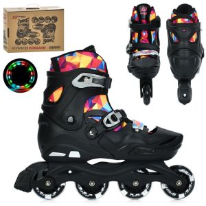 Особливу увагу привертає внутрішній чобіт із барвистим принтом у формі різнобарвних клітин — він додає характеру та робить ролики помітними на вулиці. А світні колеса не тільки мають ефектний вигляд у русі, але й покращують видимість у сутінку.
