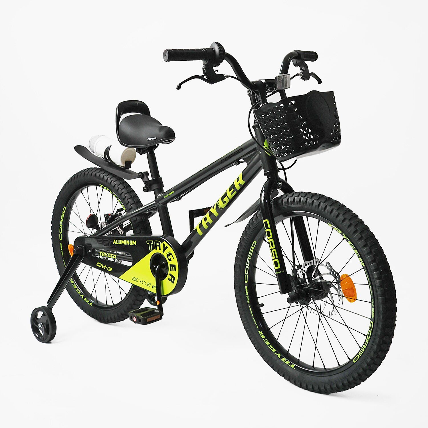 Дитячий двохколісний Велосипед CORSO "TAYGER" 20 дюймів (TG-20831) алюмінієва рама, дискові гальма, дод. колеса, дзвоник, бутилочка