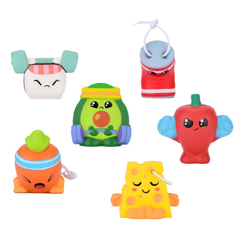 Познайомтеся зі СПОРТИВНИМИ СМАКОЛИКАМИ — серією жмакальних іграшок-сквішів, що поєднують спорт і їжу у веселому стилі. Кожен герой має свій характер і улюблений вид спорту: морквинка відточує витривалість, перець виходить на ринг, авокадо демонструє силу, сашимі піднімає гантелі, сир медитує, а баночка напою качає прес.