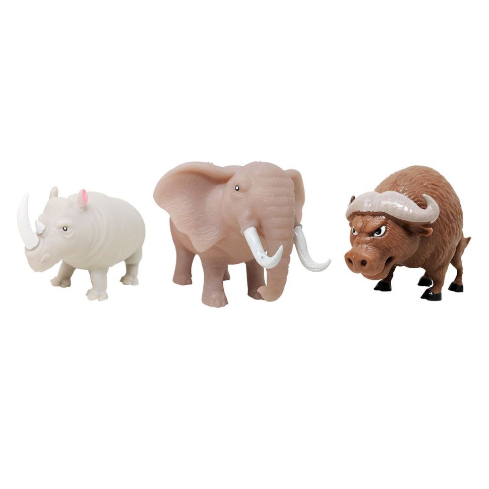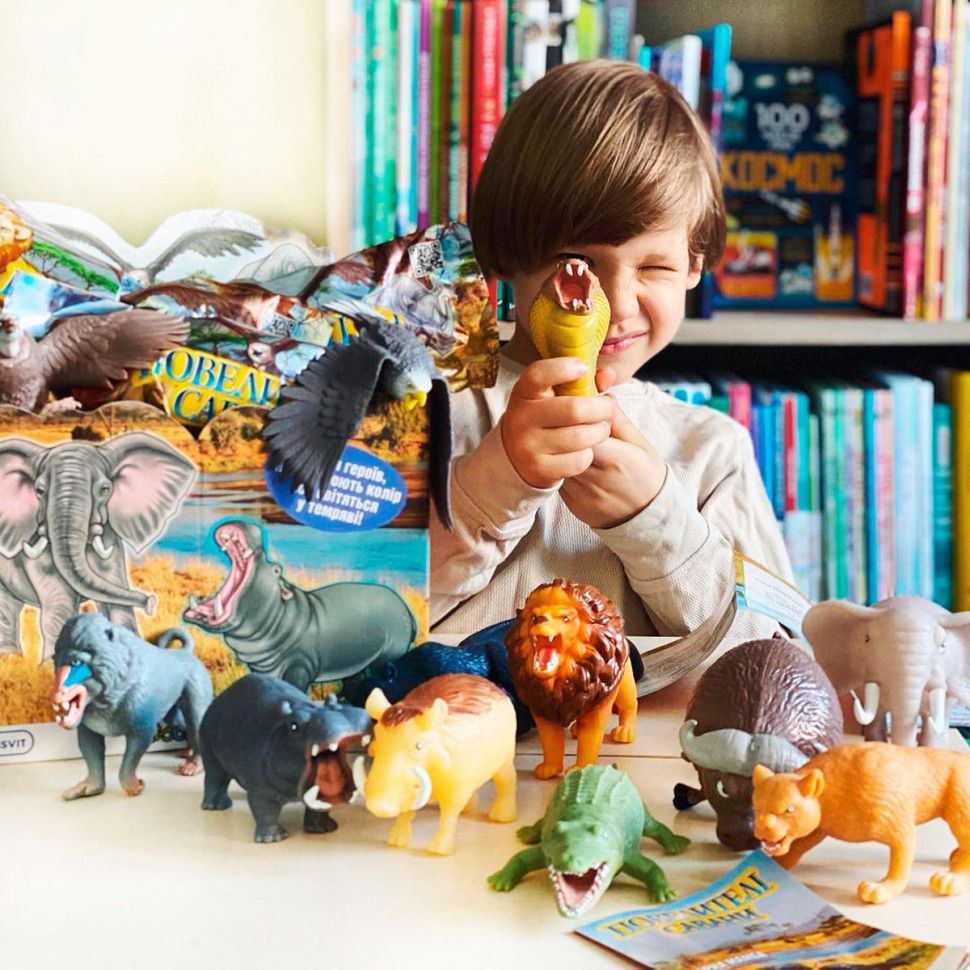 Вирушайте в подорож разом із Повелителі савани, щоб відкрити для себе великого африканського слона та короля савани - лева. Спостерігайте за бегемотом і стережіться носорога. Дізнайтеся, які з них змінюють колір чи світяться у темряві! Зберіть їх усі!