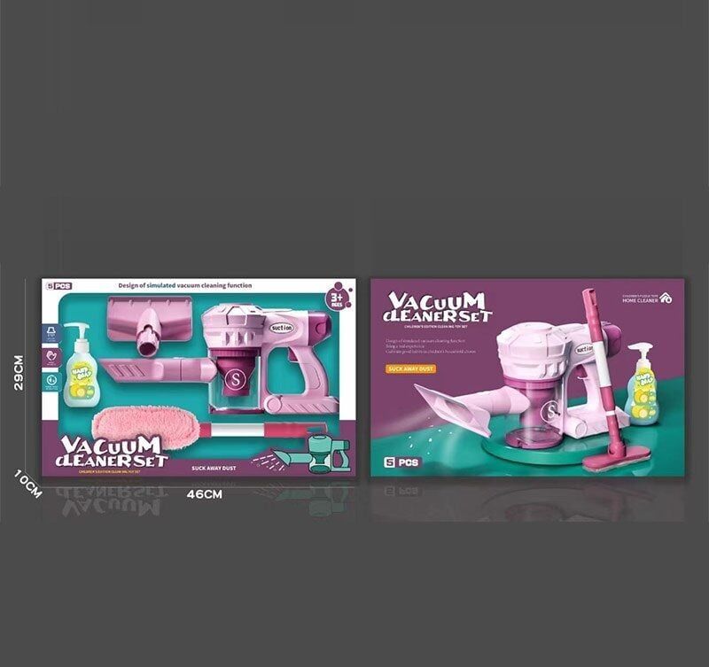 Дитячий Набір для прибирання (388-9) 6 елементів, пилосос на батарейках, всмоктує дрібне сміття, 2 насадки, пляшечка з “мийним засобом”, швабра