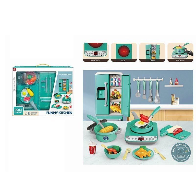На яскравій кухні втілюються у реальність найсмачніші кулінарні фантазії! Тільки уявіть, як малеча відкриває дверцята невеличкого холодильника, наповненого овочами, фруктами та пляшечками зі "справжніми" напоями. На індукційній плиті смажиться яєчня і з кухні доносяться аромати уявних страв, а дитячі ручки спритно перевертають інгредієнти в каструльці чи сковорідці. Підсвічування плити, реалістичні звуки кипіння й смаження додають маленькому кухарю неабиякого натхнення. Ти більше, що під рукою в нього – необхідний посуд, аксесуари та муляжі харчових продуктів. <br>