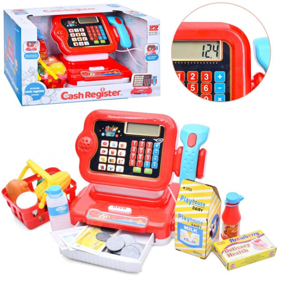 Дитячий ігровий касовий апарат 6178F калькулятор, сканер, звук, світло, кошик