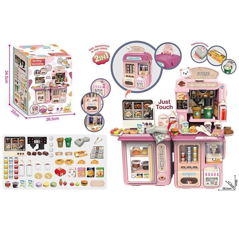 Цей супермаркет 2 в 1 подарує дітям море радості та можливість відчути себе справжніми продавцями й кухарями одночасно! У комплекті є продукти, каса, сканер і навіть апарат з напоями, кавомашина та ігри, що створюють атмосферу справжнього магазину-кафе. Каса та сканер обладнані підсвічуванням і звуковими ефектами, що робить гру ще реалістичнішою. Малюки зможуть «пробивати» покупки, готувати та обслуговувати клієнтів, розвиваючи уяву, соціальні навички та комунікацію. Такий набір стане чудовою розвагою для компанії дітей, а також цікавим подарунком на будь-яке свято. <br>