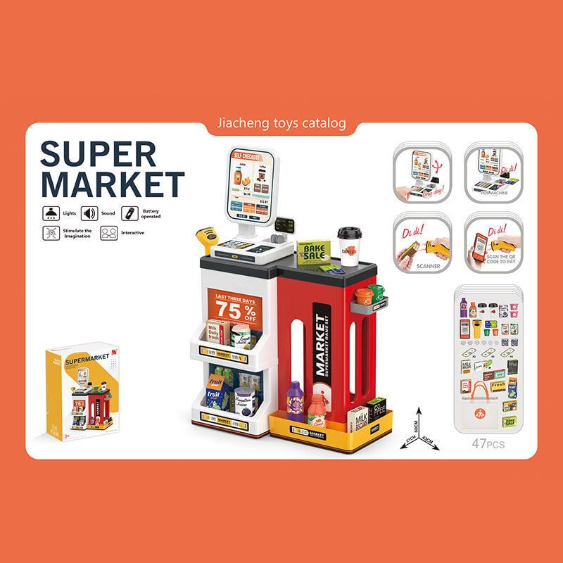 Іграшковий супермаркет - кращий за справжній! Бо правила його роботи ти визначаєш сам! До ігрового набору входять 47 деталей. Це елементи каси зі столом, полицями та кавомашиною, а також різноманітні аксесуари, що урізноманітнюють ігровий процес. Сканер та касовий апарат відтворюють характерні звуки. Іграшка однаково сподобається як дівчаткам, так і хлопчикам. <br>