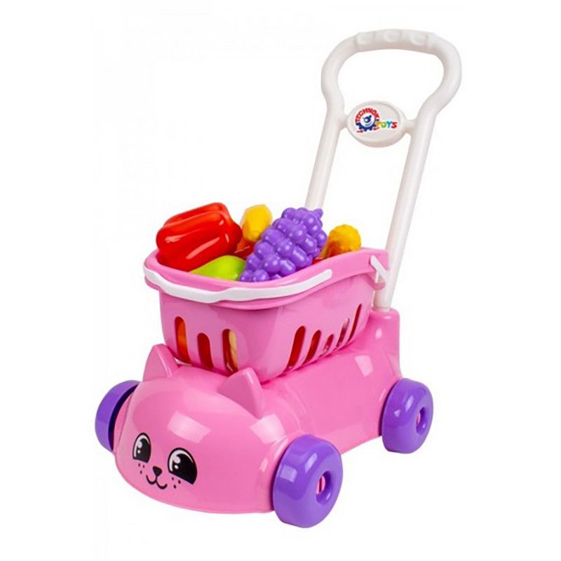 У наборі: візок з ручкою, кошик, 16 овочів та фруктів.