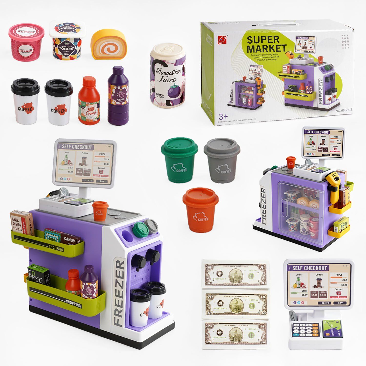 Супермаркет 668-136 (18) 46 елементів, звук, підсвічування, сканер, продукти, купюри, монети, на батарейках, в коробці