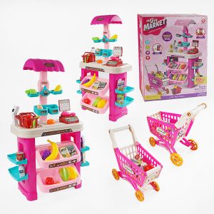 Навіщо йти в магазин, якщо вдома вже є справжній супермаркет? Іграшковий набір складається з 80 елементів, які відтворюють супермаркет та атмосферу в ньому. Пластикова стійка з поличками та боковими відсіками для продуктів майже не відрізняється від справжньої. Іграшкові ваги імітують електронні, за допомогою яких зазвичай зважують овочі та фрукти. Сканер підсвічується та видає реалістичний звук. А розмаїття харчових продуктів та інших аксесуарів дозволяє покласти в корзину чи візок те, що душа забажає. Наприклад, пляшку з молоком, йогурт або соус. В грі може брати участь одна дитина або ж відразу декілька. Це дозволяє приміряти на себе роль продавця чи покупця, а також розвивати комунікативні навички.