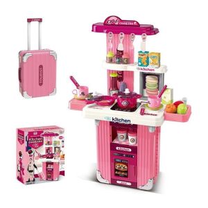 Дитяча Кухня 008-101 (8) 2 в 1: кухня+валіза, висота 66 см, підсвічування, звуки приготування, регуляція звуку, посуд, продукти, приладдя, в коробці