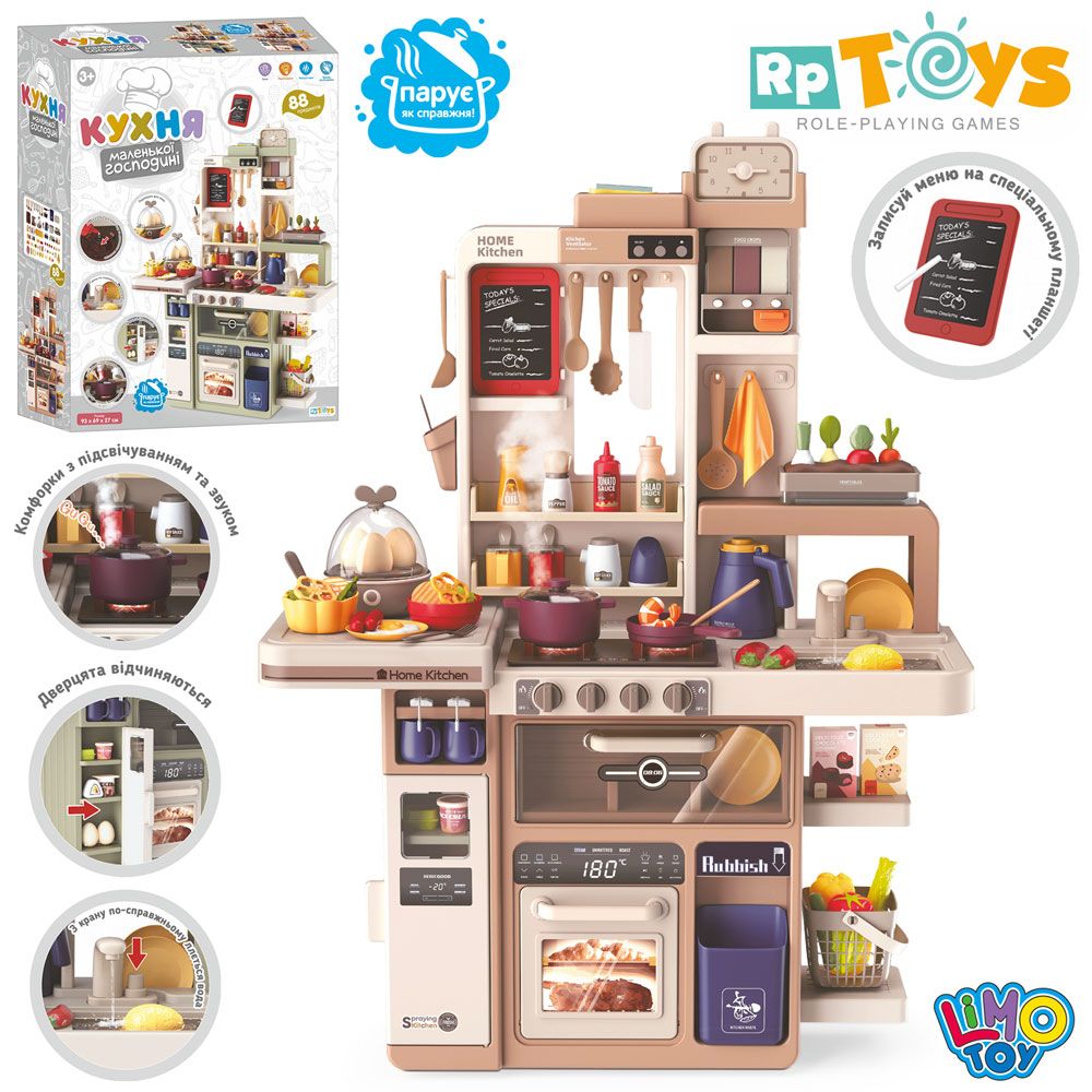 Дитяча кухня 889-230 предметів 88, висота 93 см, музична витяжка, "холодна пара", мийка (вода), яйцеварка