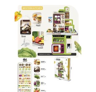 Дитяча Кухня 938 A (5) ел, звук, помповий механізм подачі води, парогенерація, посуд, їжа, аксесуари, мікрохвильова піч, підсвіч, музична панель, в коробці