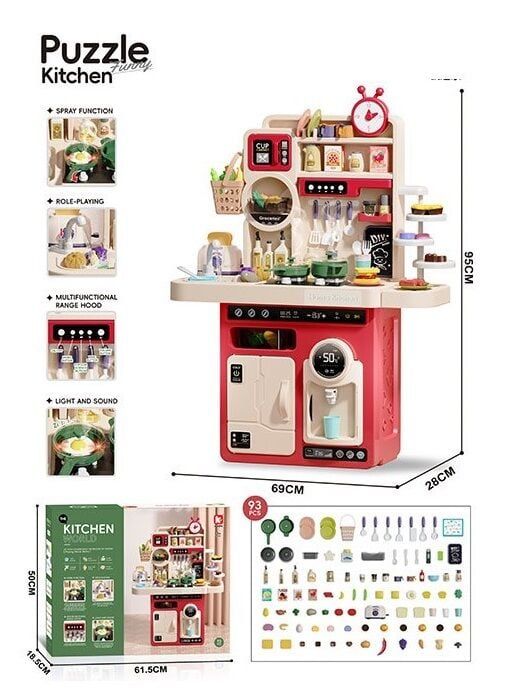 Дитяча Кухня G 787 A Штрих = 01202 (4) на батарейках, звук, озвуч англ мовою, пісні, підсвітка, імітація роботи плити, витяжки, посуд,парогенератор,в коробці