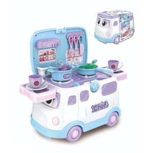 вирушай у захопливу подорож із власною кухнею. В наборі є все необхідне для захопливої гри у шеф-кухаря, прямо вдома, із власним автобусом-кухнею. У комплект входить набір столових приборів, тарілочки, та посуд для приготування їжі, та звісно самі продукти. <br>