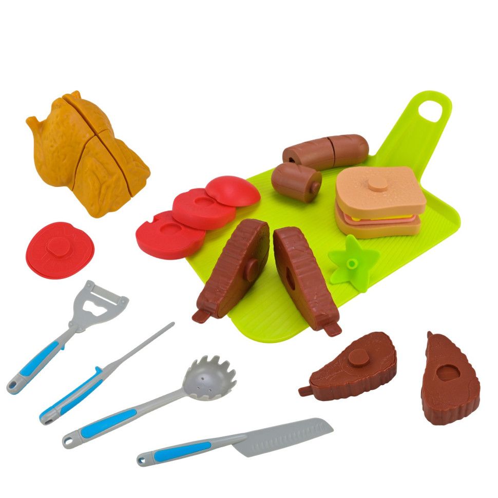 • Завдяки столовому приладдю та зручній дощечці продукти можна безпечно "розрізати", створюючи різні кулінарні історії.
