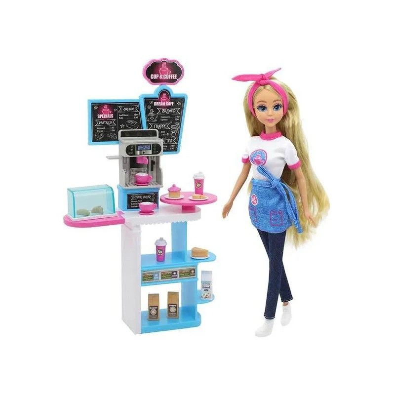 Пориньте у світ уяви та насолодіться цим чарівним ляльковим набором, ідеальним для всіх любителів готувати. Допоможіть нашій чарівній баристі пригостити гостей смачними тістечками, випічкою та ароматною кавою у своєму власному кафе.