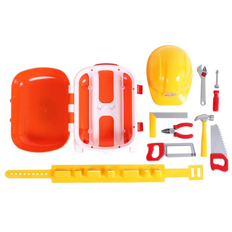 Яскравий, функціональний валізу з набором інструментів готовий і чекає виконання своїх важливих завдань у захоплюючих іграх! «Ремонтувати» або «будувати»? Малюк вирішить сам! У нього будуть необхідні для цього іграшкові інструменти: молоток, плоскогубці, пила по металу і пила по дереву, куточок, розвідний ключ, викрутки з фігурною і плоскою насадками.