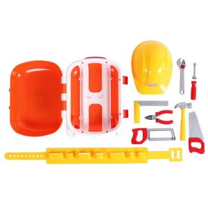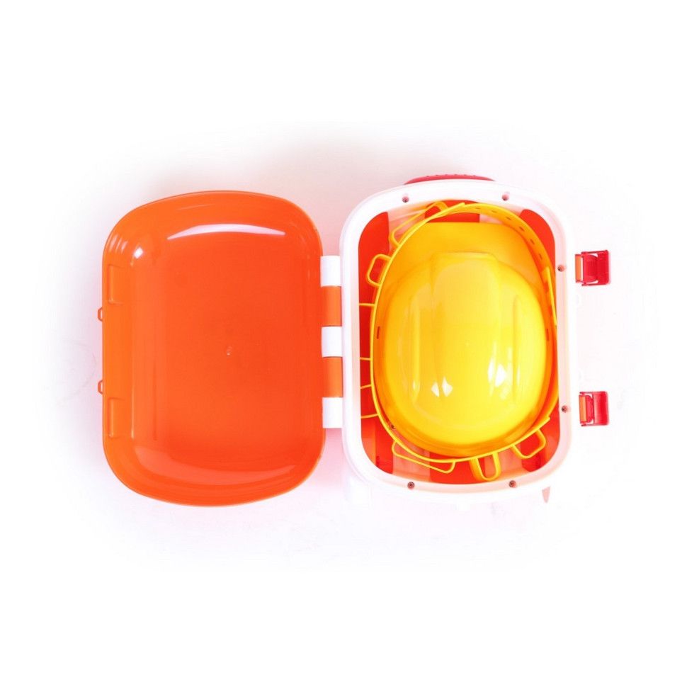 Також в «чарівному» валізі маленького майстра знайдеться зручний пояс зі спеціальними кишенями для інструментів і каска, яка дуже схожа на каску дорослих будівельників.