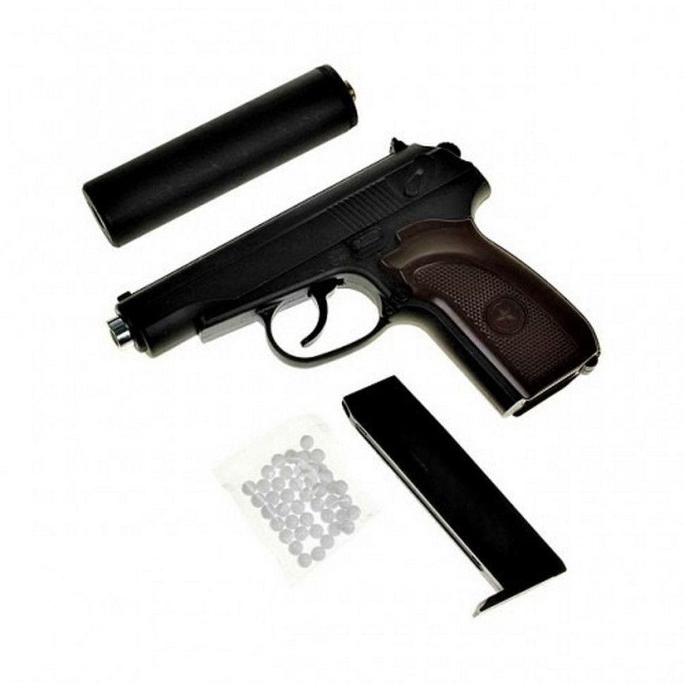 Комплектація: пістолет, глушник, упаковка кульок (кульок) 6 мм