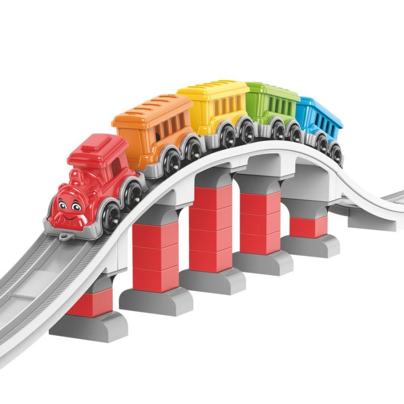 Безмежні можливості для гри: Набір включає 16 прямих, 8 вигнутих та 2 довгі дуги елементів колії, що дозволяють створити залізничне полотно довжиною до 386 см, а при бажанні і до вражаючих 438 см! Додайте сюди величний міст з опорами - і ось ваша власна залізнична мережа готова до подорожей!