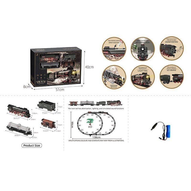 Залізниця 611 B (12) 4 вагони довжиною 72 см, дорога 99х138 см, підсвічування, пара, звук-беззвучний режим, рух вперед-назад, ак. 3.7V, в коробці