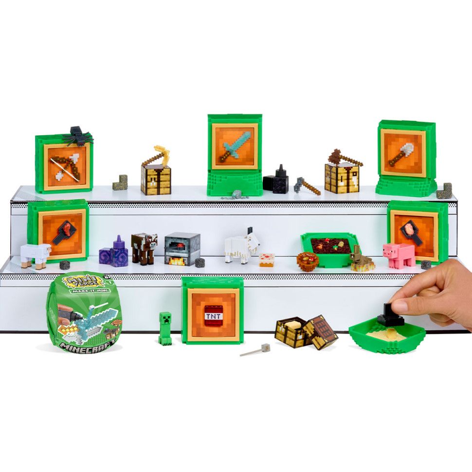 Збирайте! На цьому веселощі не закінчуються! Мініаксесуари та пакування дуже стильні для колекціонування. Від мініверсії елементів до блоків - у серії "Mini Minecraft" є понад 60 унікальних елементів, пакування та аксесуарів, які ви можете колекціонувати. Створіть свій власний мінісвіт Minecraft!