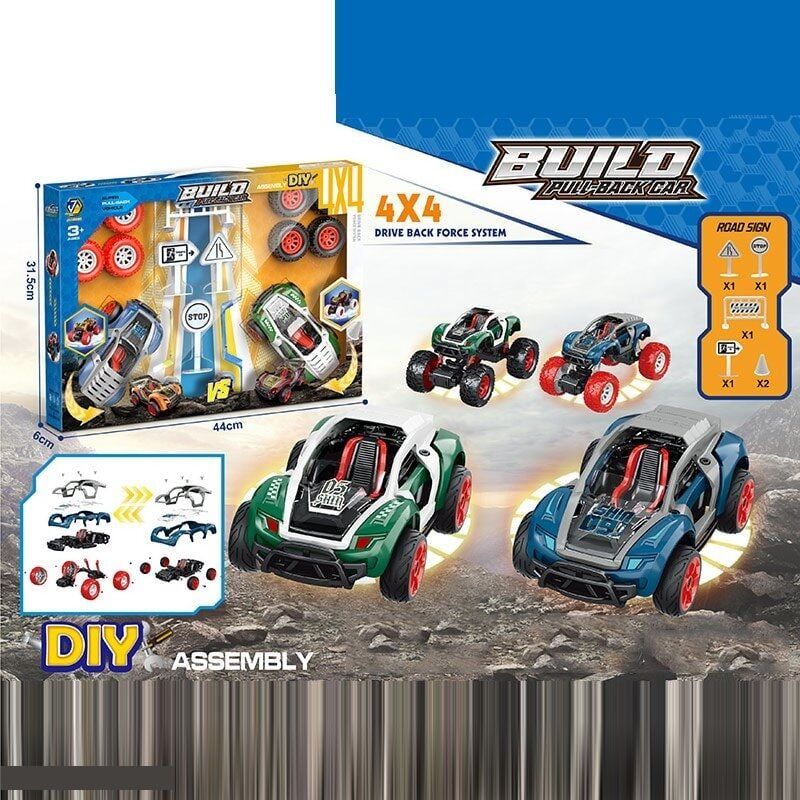 Машинки-конструктори 65276 (24/2) 2 машинки, інерція, 2 набори коліс, гумові шини, інструменти, в коробці