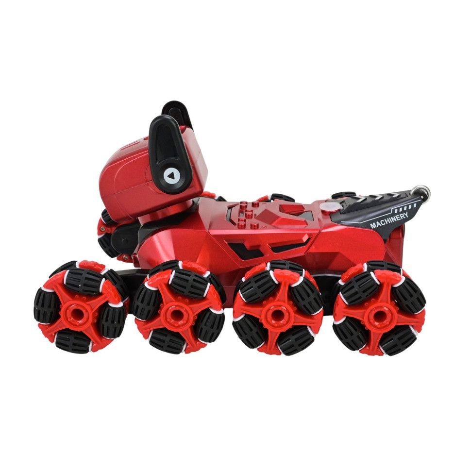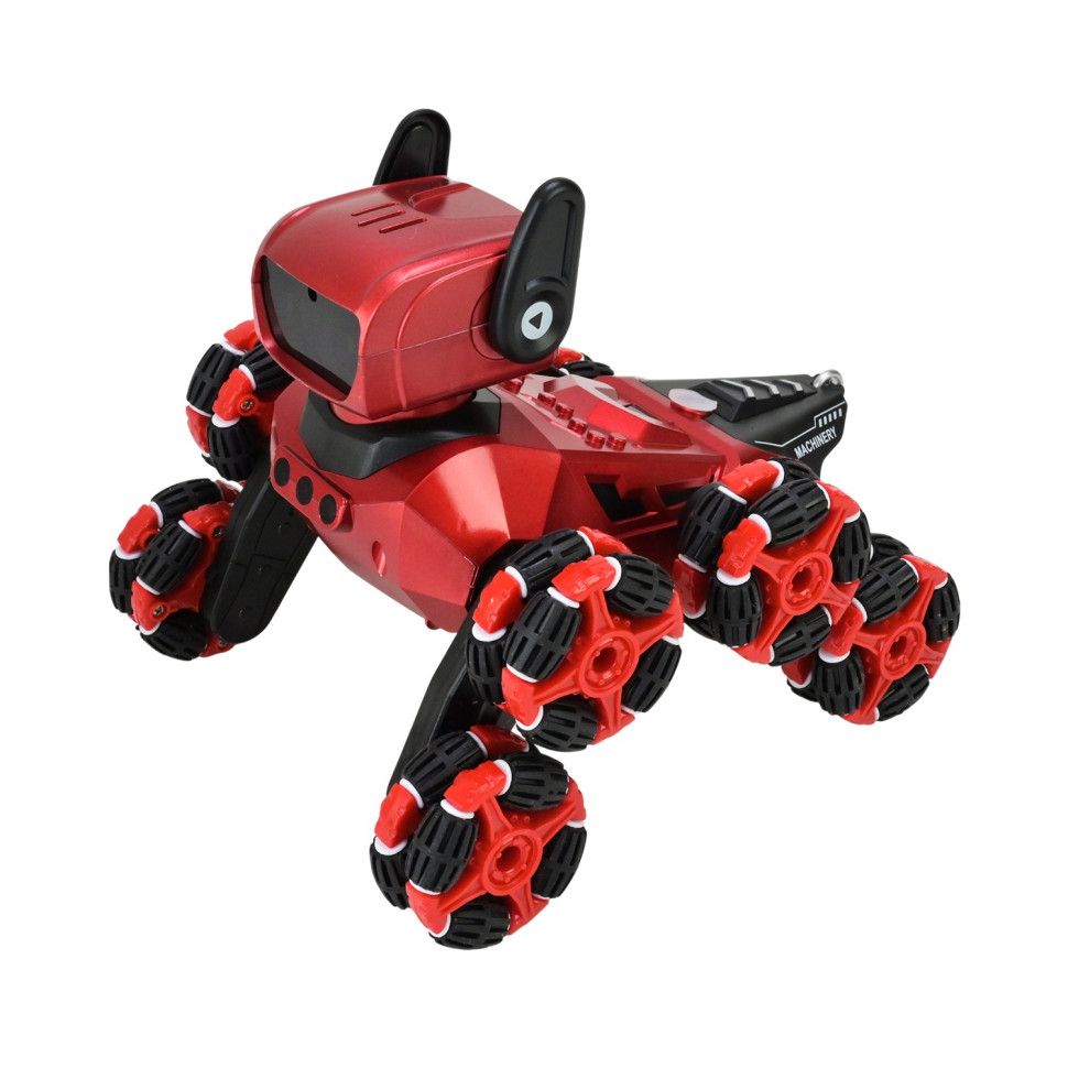 • Рух: робот-песик може їхати у всі сторони, обертається на 360 градусів, стає у різні пози – все це завдяки унікальній конструкції колес із 8шт, по 4 на кожному ряду.