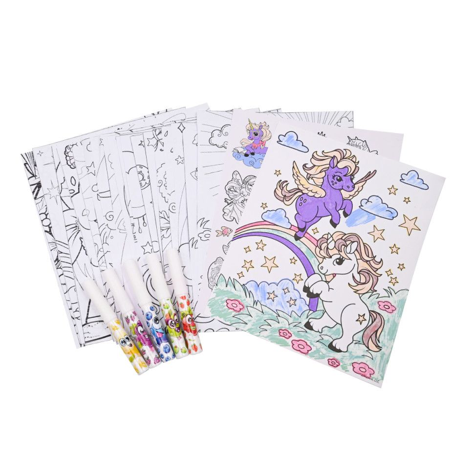 Ароматний набір для творчості серії "Clean Colouring" - ЧАРІВНИЙ СВІТ прекрасний подарунок юним художникам. Ви познайомитеся з магічним світом єдинорогів і фей на розмальовках у чорно-білому кольорі. Розмалюйте їх чарівними маркерами з набору, щоб вони стали різнокольоровими та яскравими! А з ароматами ягід і фруктів малювання стане ще більш захопливим!