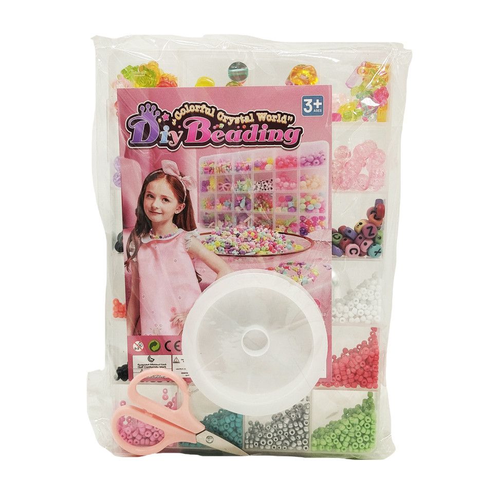 Усередині ви знайдете бісер різних кольорів і форм, завдяки чому можна створювати браслети, намиста, брелоки та інші стильні аксесуари. Для роботи в комплект входить ліска та ножиці, тож дитина може одразу починати творити.
