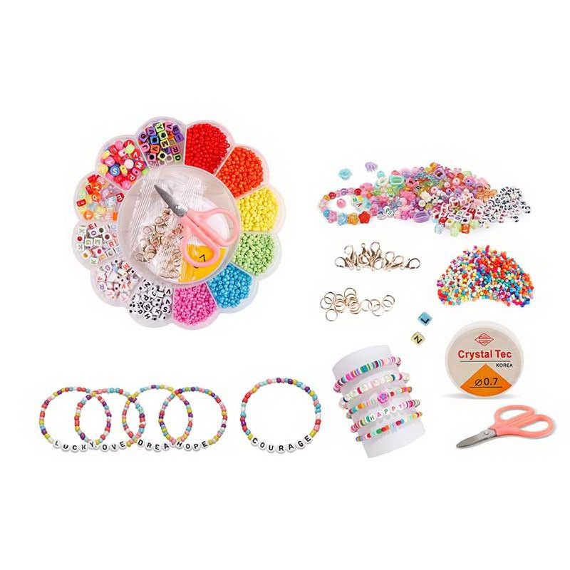 Різноманітність матеріалів: Набір включає не лише класичний бісер, але й декоративні намистини, що дозволяє створювати більш складні та оригінальні дизайни прикрас.