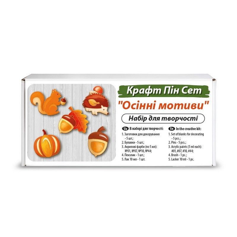 Додайте своєму образу теплі осінні акценти з набором для творчості "Осінні мотиви" від Fabrika Decoru! Цей комплект "все-в-одному" дозволить вам легко та із задоволенням створити п'ять унікальних дерев'яних значків-пінів. Вам не потрібно бути художником — просто дайте волю фантазії та розфарбуйте милі фігурки лісових мешканців. Готові значки стануть чудовою прикрасою для вашого одягу, сумки або душевним подарунком, зробленим з любов'ю.