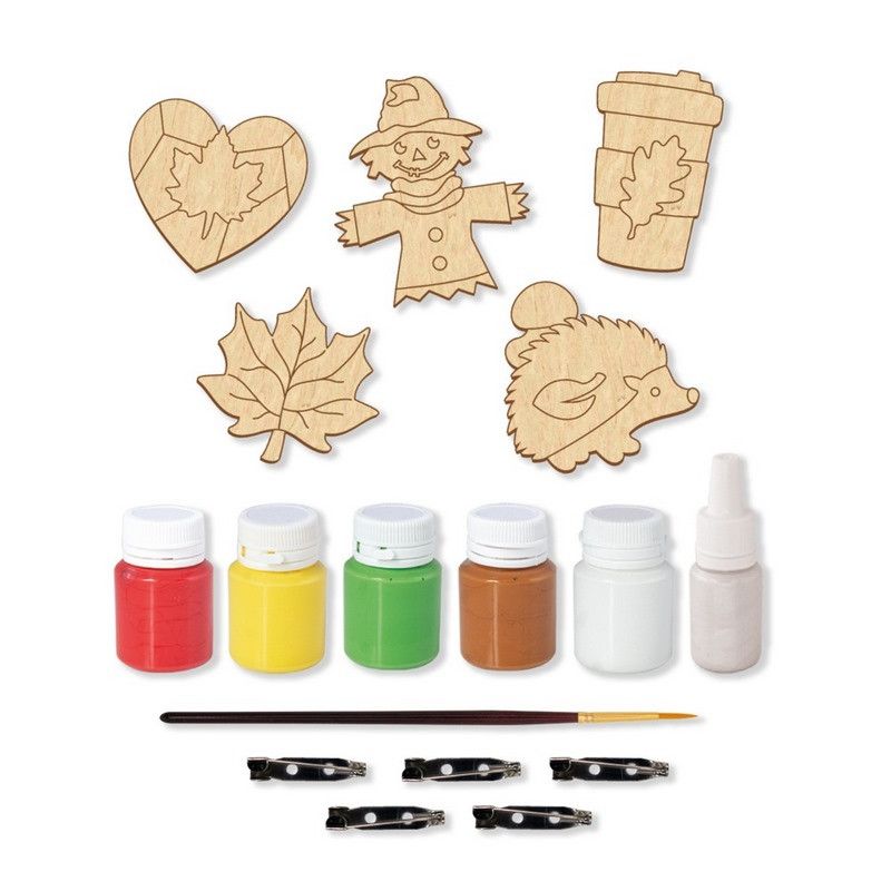 Зловіть затишний осінній настрій з набором для творчості "Осінній вайб" від Fabrika Decoru! Цей комплект "все-в-одному" дозволить вам легко та із задоволенням створити п'ять унікальних дерев'яних значків-пінів. Вам не потрібно бути художником — просто дайте волю фантазії та розфарбуйте милі фігурки: опудало, грибочок, горнятко з ароматною кавою, сердечко та кленовий лист. Готові значки стануть чудовою прикрасою для вашого одягу, сумки або душевним подарунком, зробленим з любов'ю.