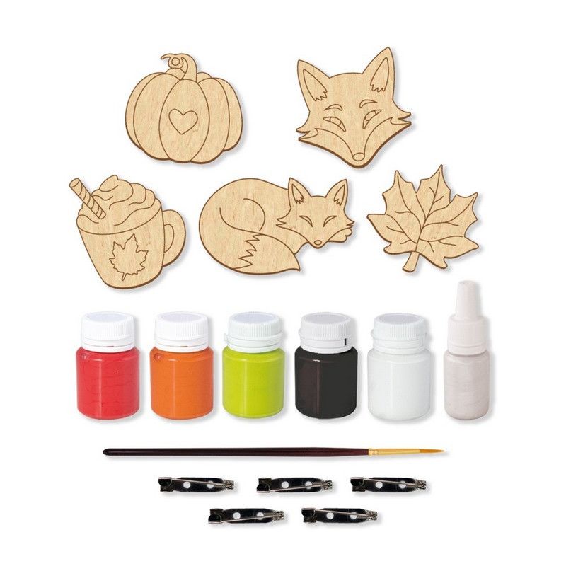 Додайте своєму образу теплі осінні акценти з набором для творчості «Яскрава осінь» від Fabrika Decoru! Цей комплект «все-в-одному» дозволить вам легко і з задоволенням створити п'ять унікальних дерев'яних значків-пінів. Вам не потрібно бути художником — просто дайте волю фантазії і розфарбуйте милі фігурки так, як підказує уява. Готові значки стануть прекрасною прикрасою для вашого одягу, сумки або душевним подарунком, зробленим з любов'ю.