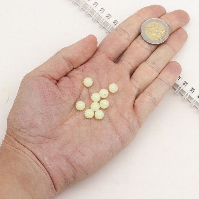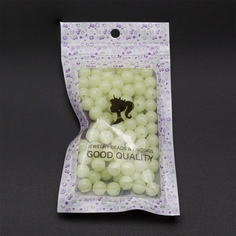 Намистини мають спеціальне покриття, яке поглинає світло (як від сонця, так і від штучних джерел) і випромінює його в темряві, створюючи м'яке та загадкове світіння. Для максимального ефекту просто потримайте їх під яскравим світлом протягом декількох хвилин.