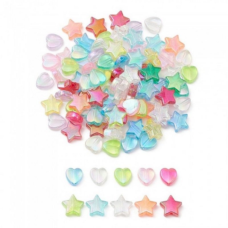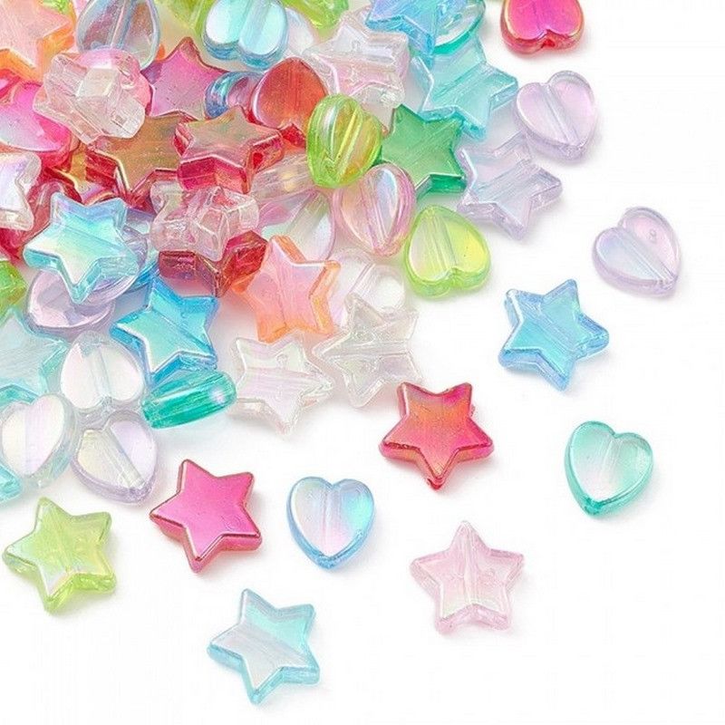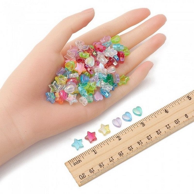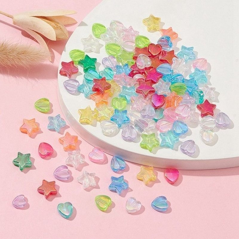 Додайте блиск і індивідуальність своїм прикрасам! Набір прозорих акрилових намистин у формі сердечок і зірочок — ідеальний вибір для створення ніжних і сяючих аксесуарів.