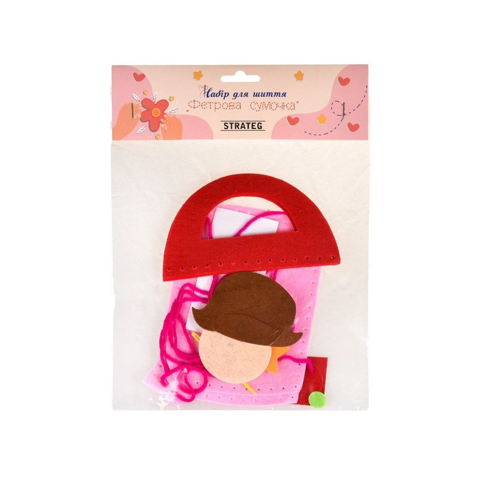 Комплектація: фетрова основа для сумки, елементи з фетру, декоративні елементи, нитки, пластикова голка.