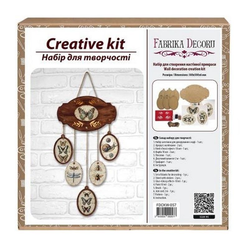 Цей набір містить все необхідне, щоб своїми руками створити красиву і оригінальну інтер'єрну прикрасу. У комплекті ви знайдете заготовки з міцного ХДФ (3 мм), яскраві наклейки із зображеннями, шнур для підвішування, клей, фарбу для розфарбовування та пензлик. Ретельно продумана комплектація та покрокові інструкції роблять процес складання простим і доступним як для початківців, так і для досвідчених майстрів.