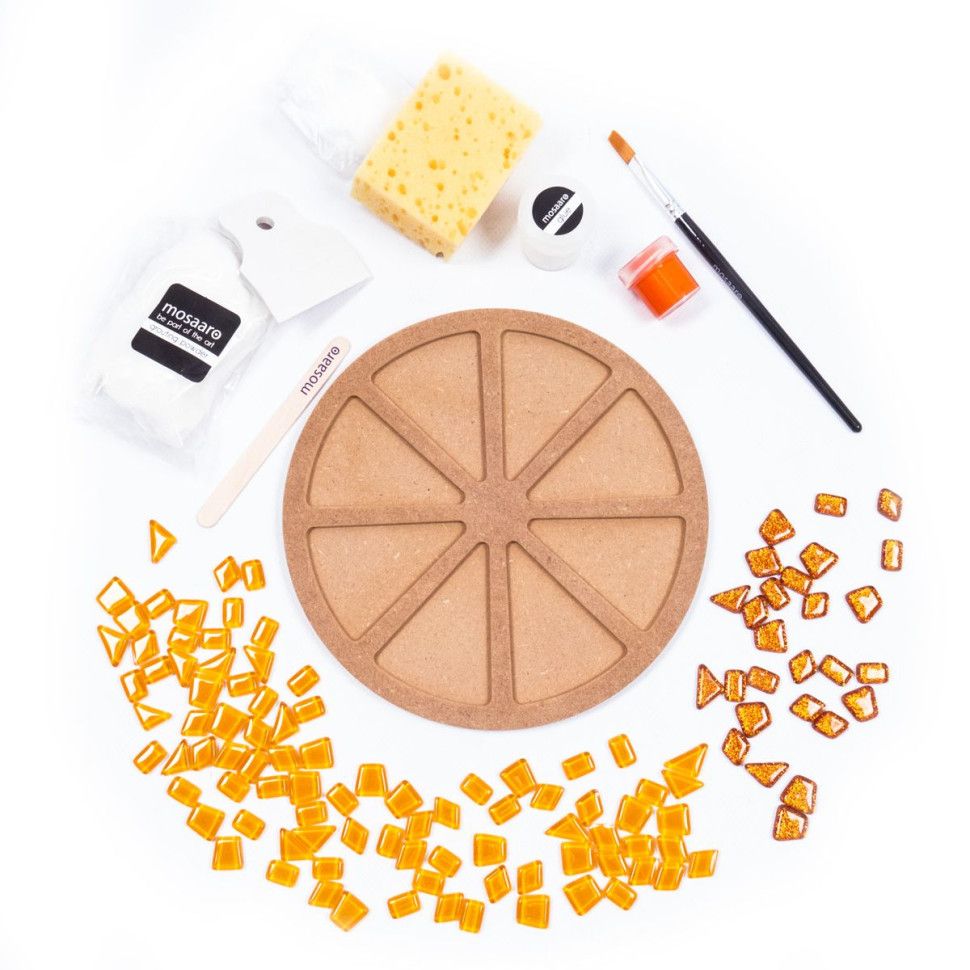 Елементи мозаїки виготовлені з переробленого скла, а міцна основа з МДФ забезпечує комфорт у роботі та довговічність готового виробу. Усі матеріали приємні на дотик, зручні та безпечні у використанні.
