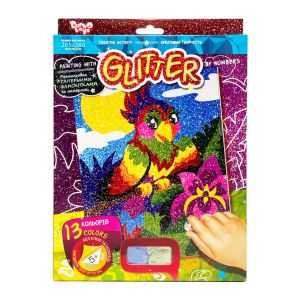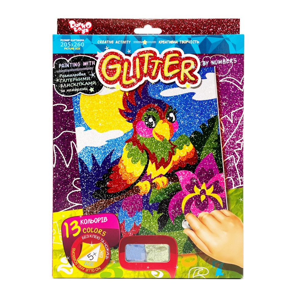 Розмальовка глітерними блискітками за номерами "Папуга" РГН-02-04 міні 20,5х26 см