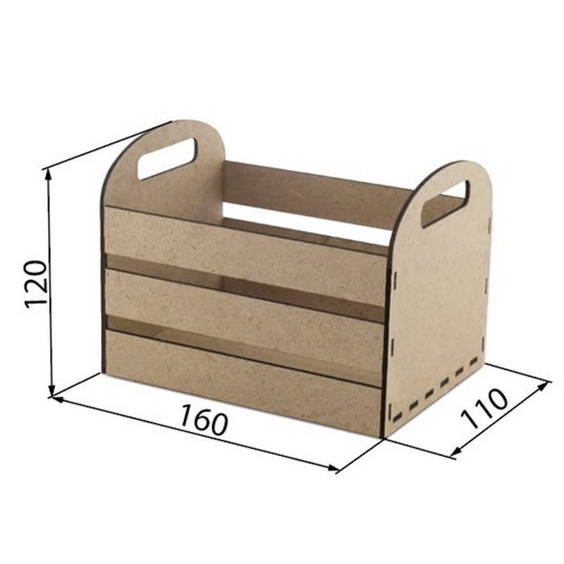 Виготовлений із міцного та легкого МДФ завтовшки 3 мм, цей кошик простий у подальшому оформленні, а матеріал не потребує додаткового шліфування. Його можна декорувати різними способами: пофарбувати, покрити морилкою, текстурною фарбою або глазур'ю, скористатися трафаретом, щоб створити справді оригінальний дизайн. Крім того, ви можете оздобити кошик дерев'яними декоративними елементами, щоб надати йому ще більш ефектного та виразного вигляду.