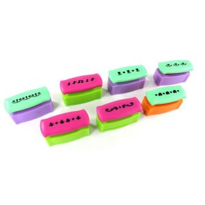 Діркопробивач фігурний для дитячої творчості. Крайовий (або бордюрний) дірокол. Вирізує ажурний край паперу, що нагадує мереживо. Для створення довгого візерунка на компостер є розмітка для точного з'єднання малюнка на аркуші. Призначений для створення листівок, дитячих виробів, різноманітних заготовок для творчої роботи. Пробиває папер щільністю від 80 г/м до 160 г/м.