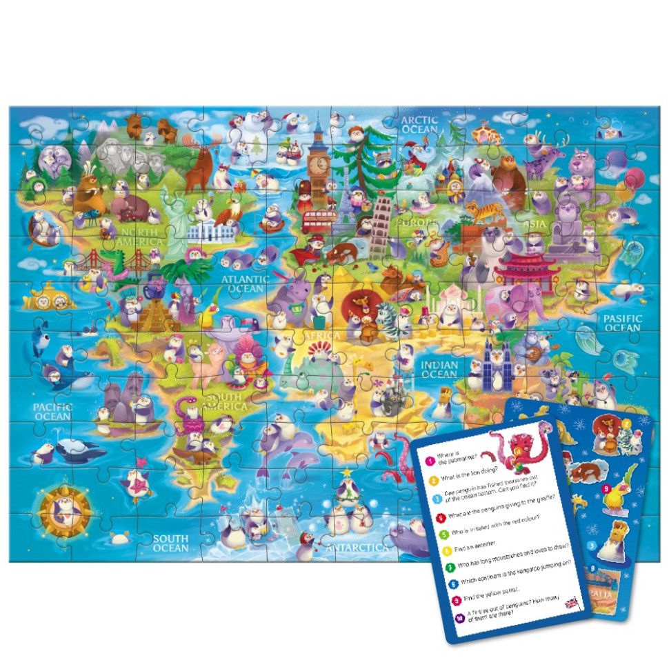 Шукаєте цікавий та розвиваючий пазл для дітей? Подаруйте малюку справжню новорічну пригоду з пазлом "Look & Find Світ пінгвінів" від бренду Dodo! Цей розвиваючий пазл на 100 елементів поєднує складання з веселою грою на уважність: після завершення картинки дитина має знайти заховані об’єкти за підказками на спеціальних картках.