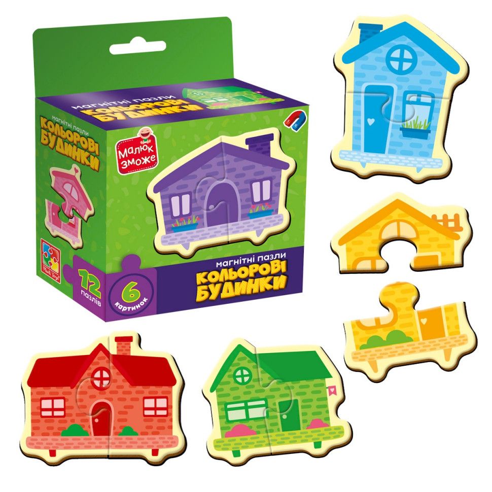 Дитячі магнітні пазли "Кольорові будинки" VT1733-03, 6 картинок