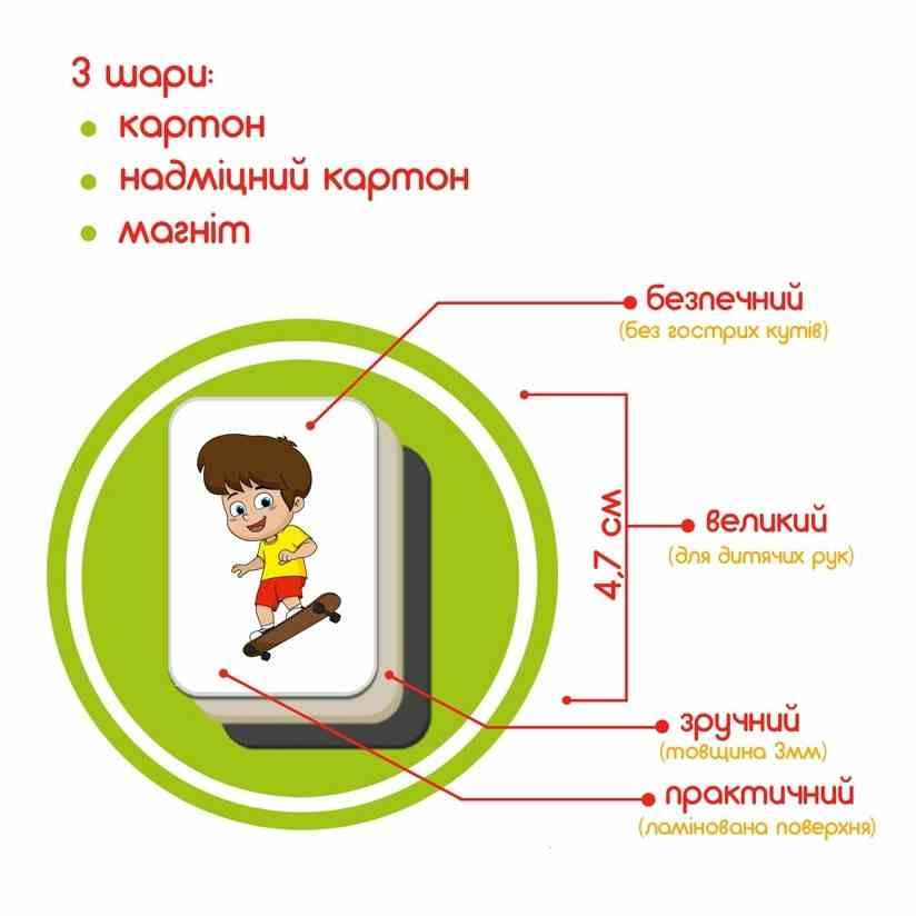 Магніти яскраві та міцні, зручні для дитячих рук та добре магнітяться на будь-якій металевій поверхні.
