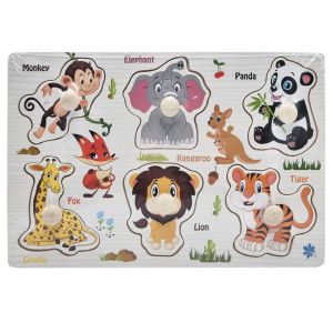 Дерев'яний пазл-вкладиш Африканські тварини 53972-2 ручка-тримач, у плівці