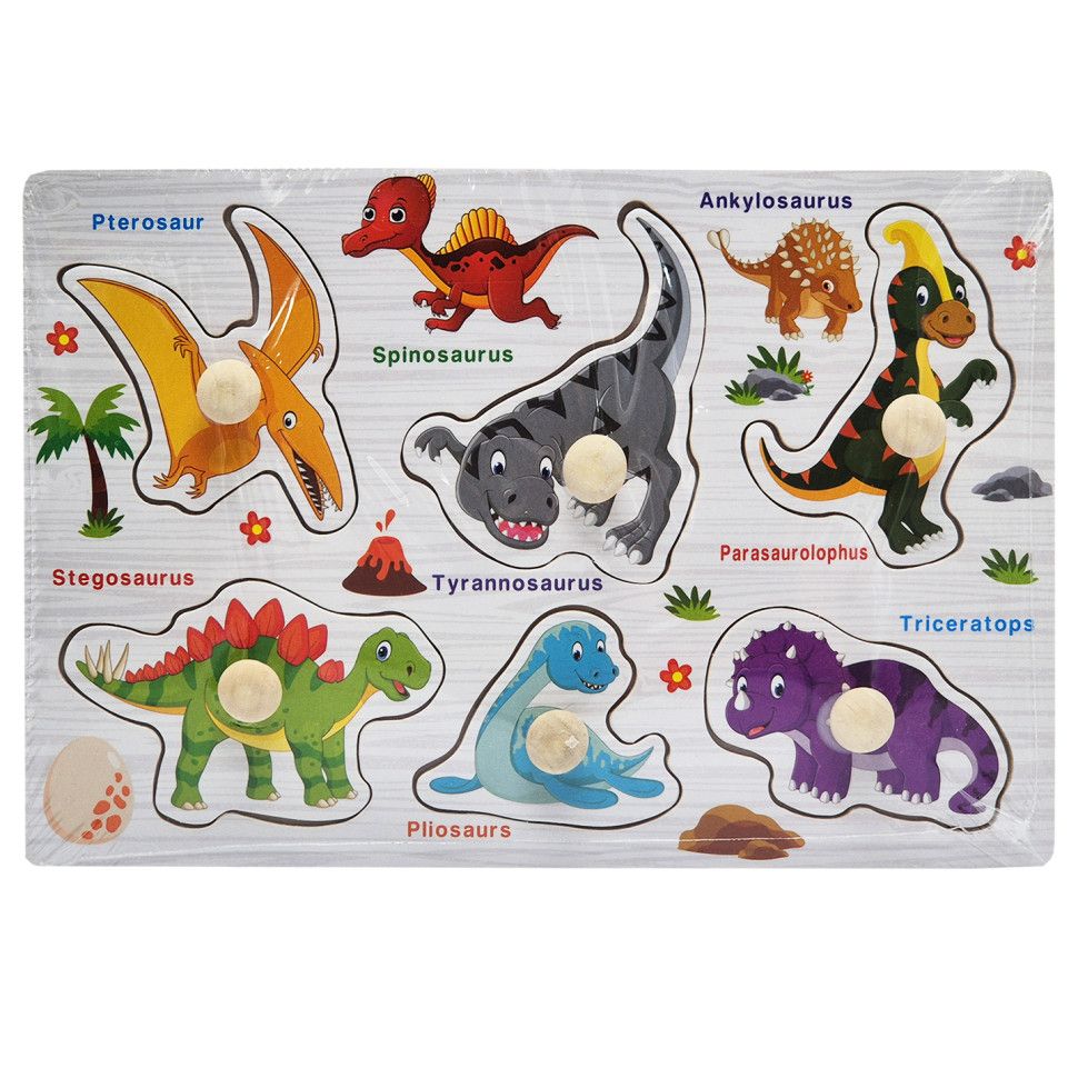 Дерев'яний пазл-вкладиш Динозаври 73239-7 назви англійською мовою